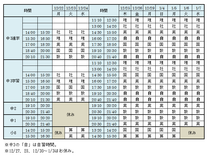 | 中3 | 10日間 | 5教科 | 58,000円 |